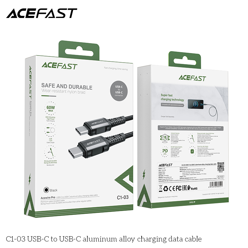 ACEFAST C1-03 USB-C to USB-C Aluminum Alloy Charging Data Cable (1.2m) - Black
