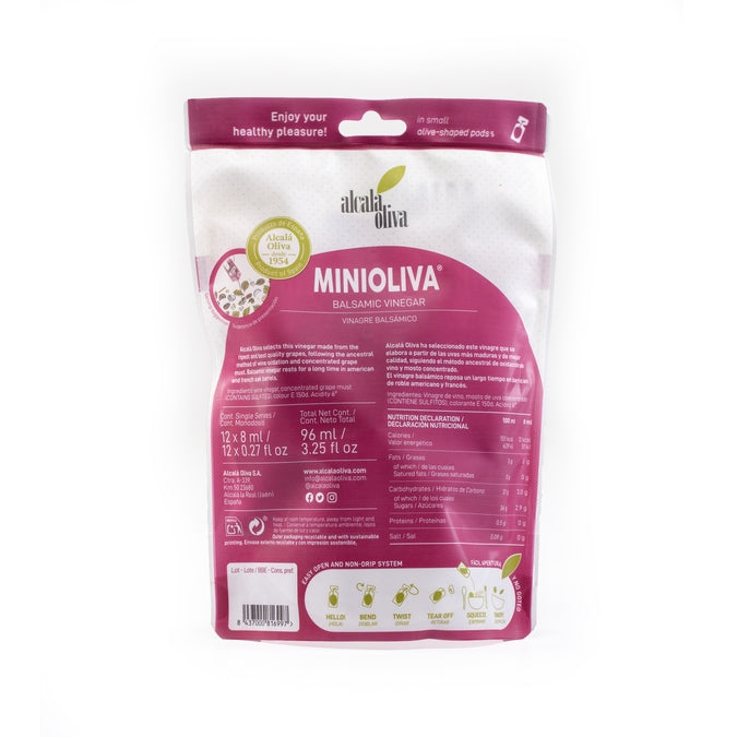 Alcalá Oliva has selected this excellent Balsamic Vinegar that is made following the ancient method of oxidation of wine and concentrated must. Each packaging contains 8ml.