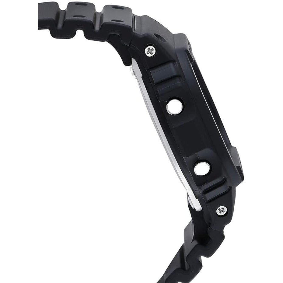 This is a black-and-white themed "Solid Colors" G-Shock model in black. This watch is entirely black, and its plain texture is emphasized by the single-tone color. The matte color on the body and band of the watch not only allows for a simple color scheme, but also emphasizes the shape of the watch itself. With its distinctive solid design, this model can be worn as a fashion statement.