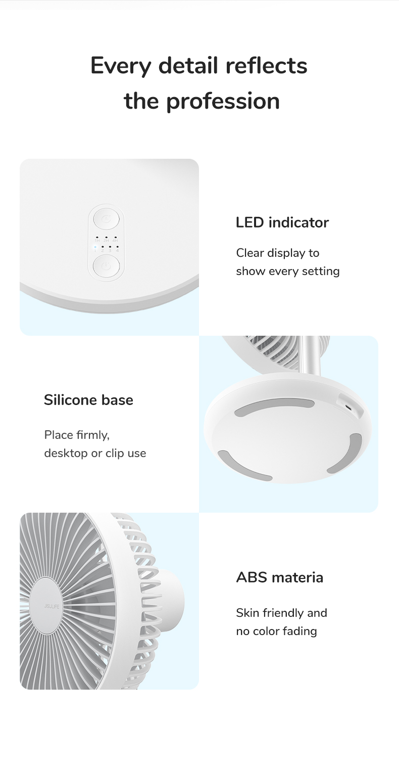 JisuLife FA13P Oscillating Extendable Desktop Fan with Timer - White
