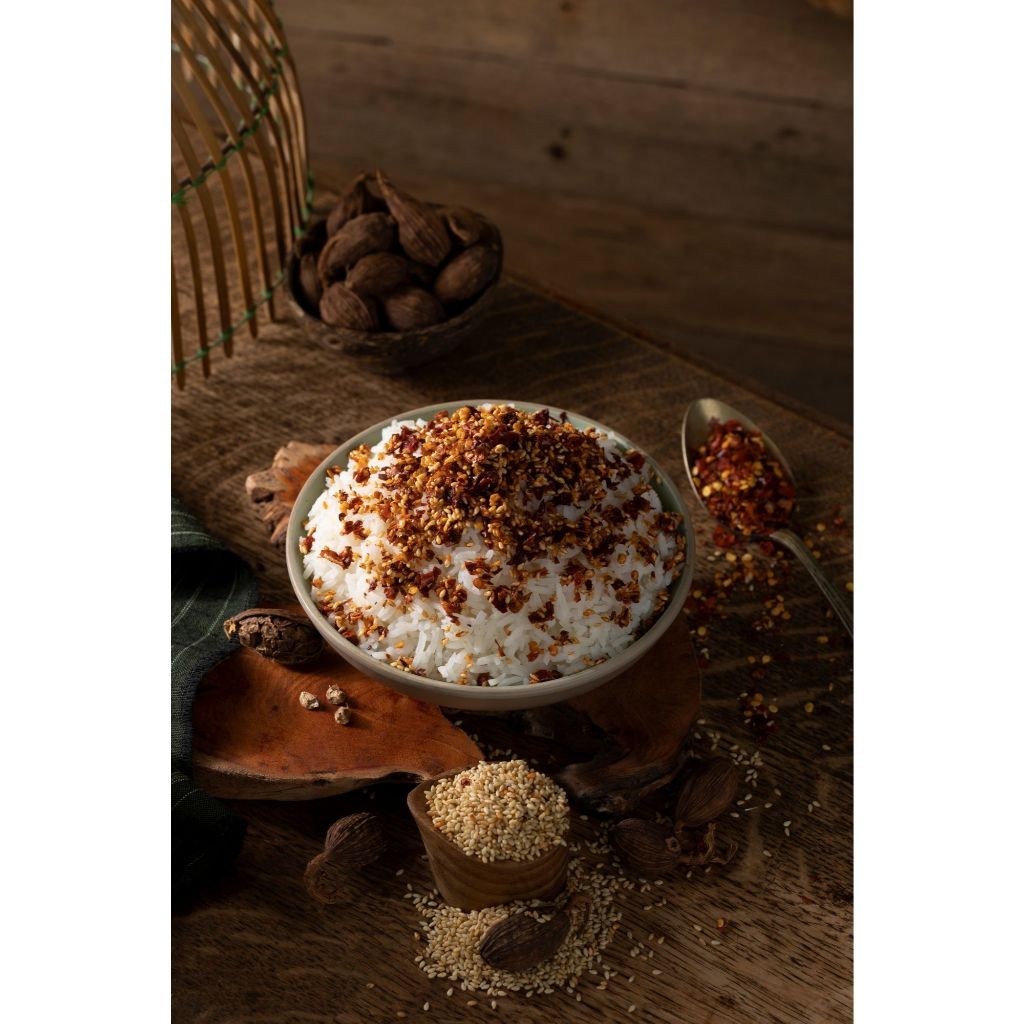 Our Sesame Chili combines the nutty aroma of sesame seeds with the heat of chili peppers, creating a versatile topping that adds depth and spice to any dish.