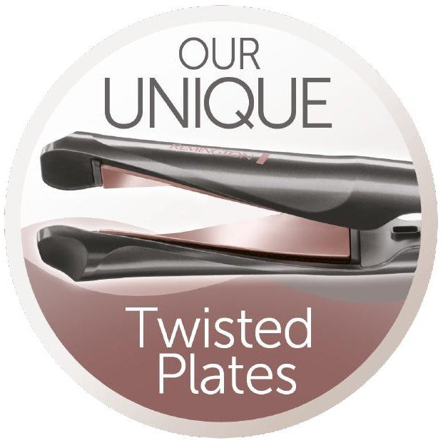 Twisted plates for easy curling and straightening.