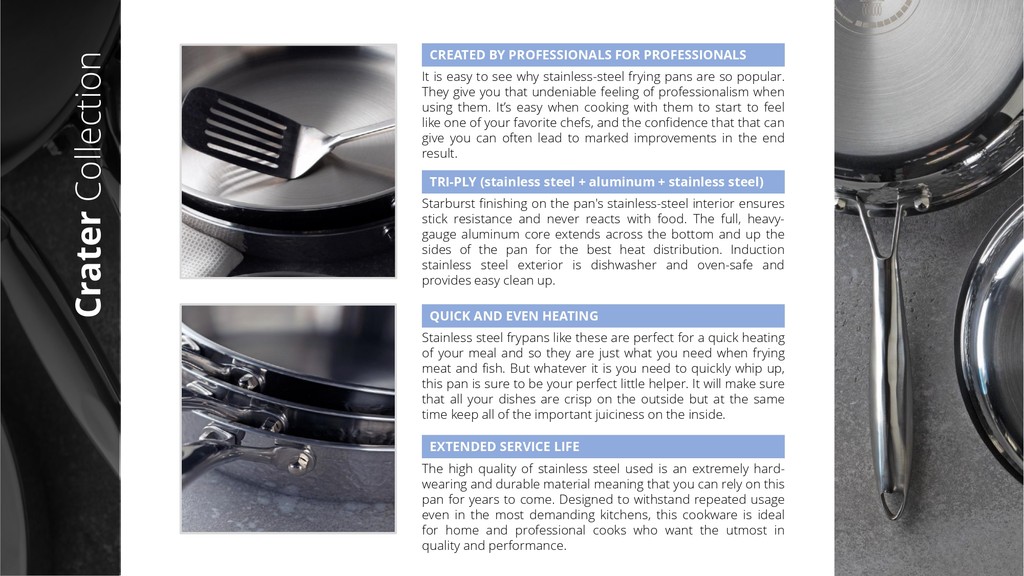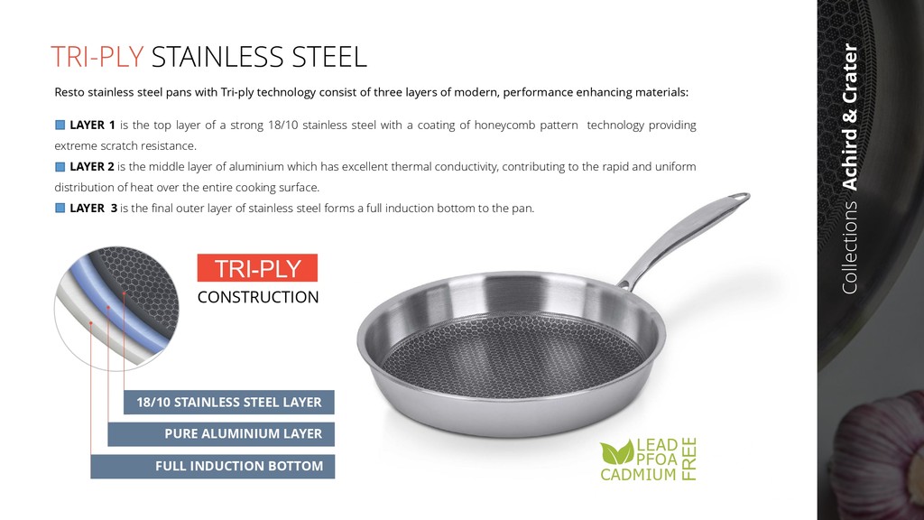 TRI-PLY (18/10 stainless steel + aluminum + 18/10 stainless steel) Ergonomic