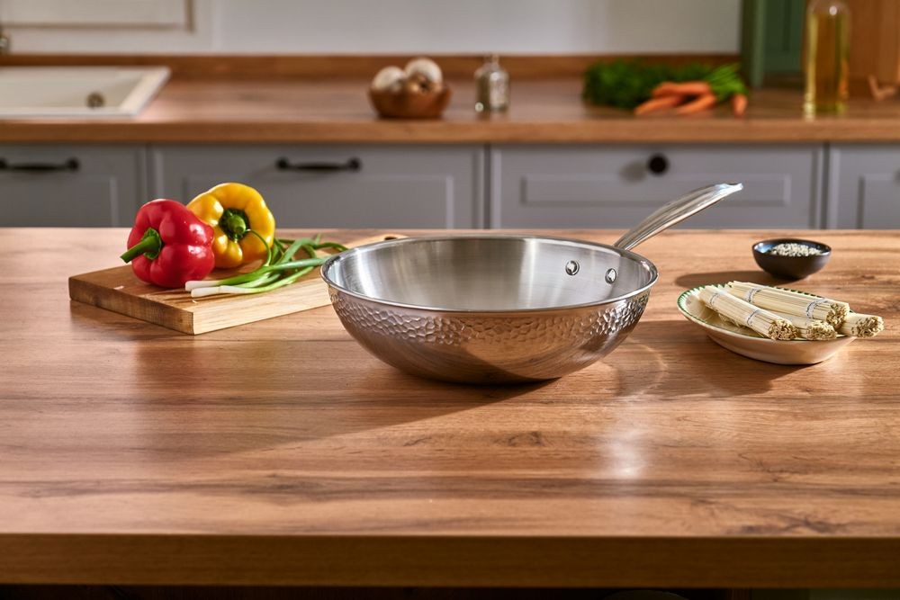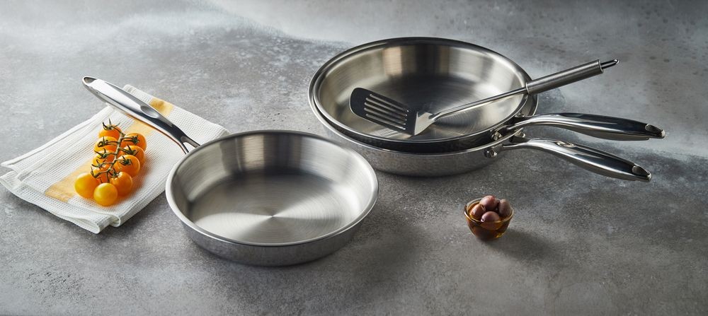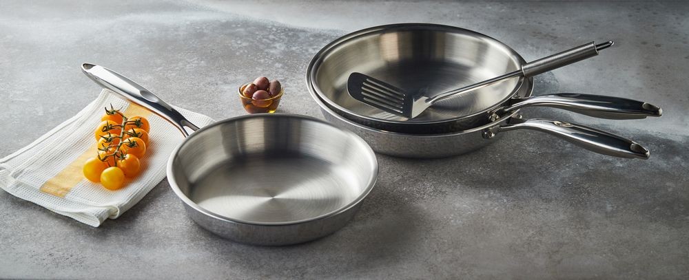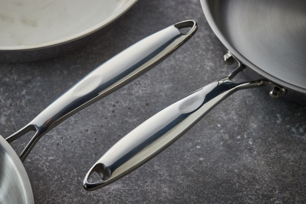 TRI-PLY (18/10 stainless steel + aluminum + 18/10 stainless steel) Stainless steel stay cool handle Energy saving 25% Works on all heating surfaces including induction Dishwasher safe Oven-safe up to 220°С