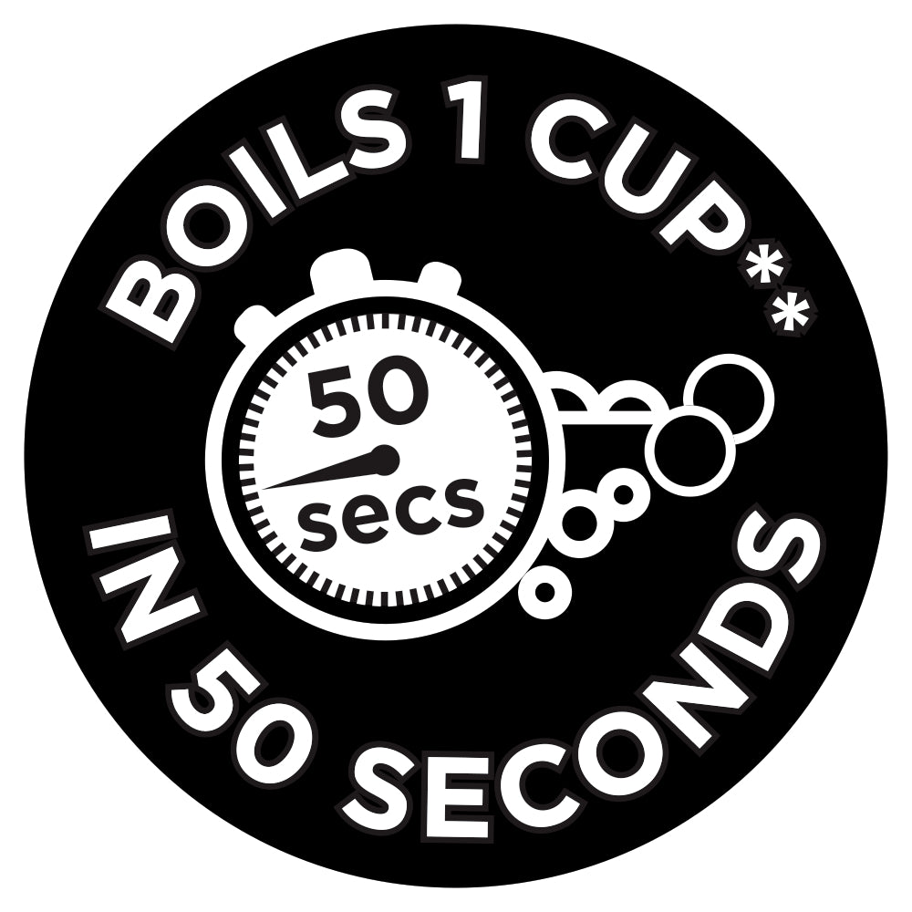 Denoting 1, 2 or 3 cup volumes so you can boil just the amount of water you need. Ideal for faster boiling options. Boils 1 cup of water in just 50 seconds* so you can enjoy your favourite drink in an instant.