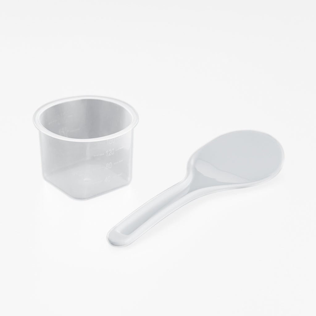Accessories: Spatula, rice basket, measuring cup
