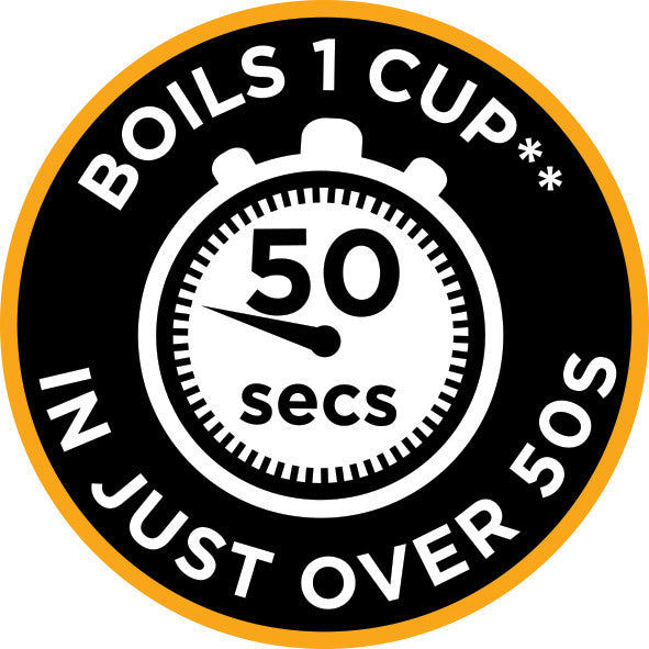Quick-boil function for 1, 2 or 3 cups, boils a cup of water (235 ml) in 50 seconds and saves up to 66% energy (when boiling a cup of water (235 ml) compared to 1.0 L).