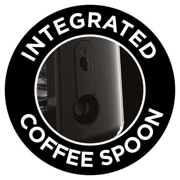 External water level indicator with capacity marking, integrated measuring spoon, indicator light.