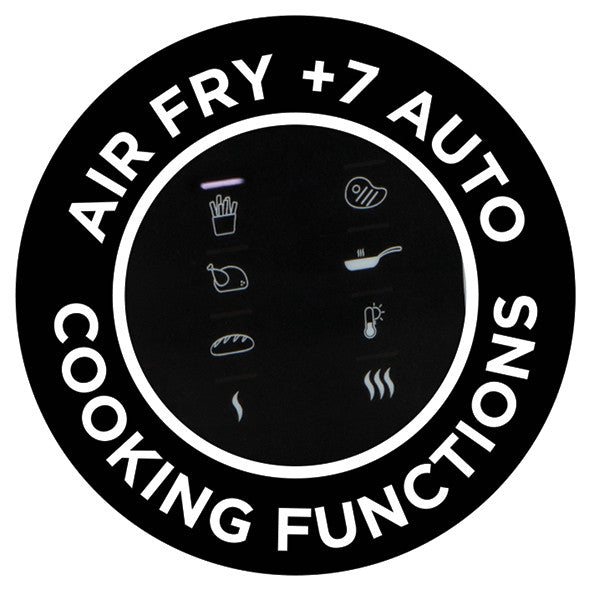 Hot air fryer plus 7 intelligent car cooking functions with digital touchscreen display: hot air frying, grilling, searing sharp, frying, slow cook (high & low temperature), baking, keeping warm